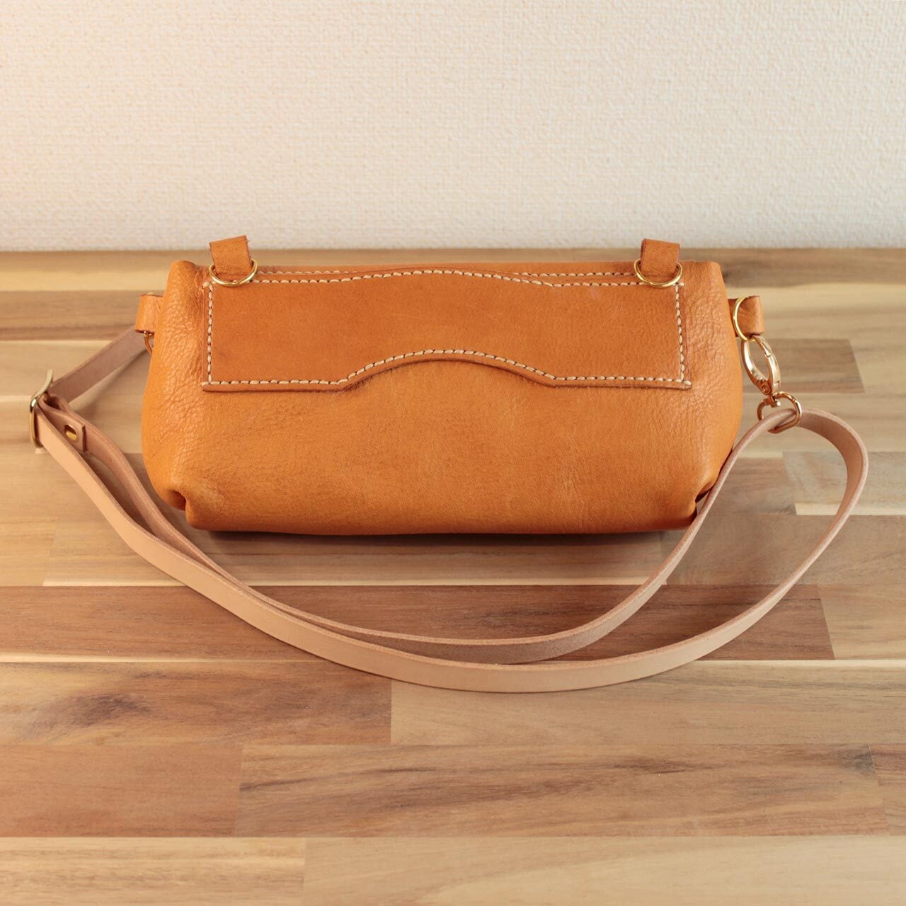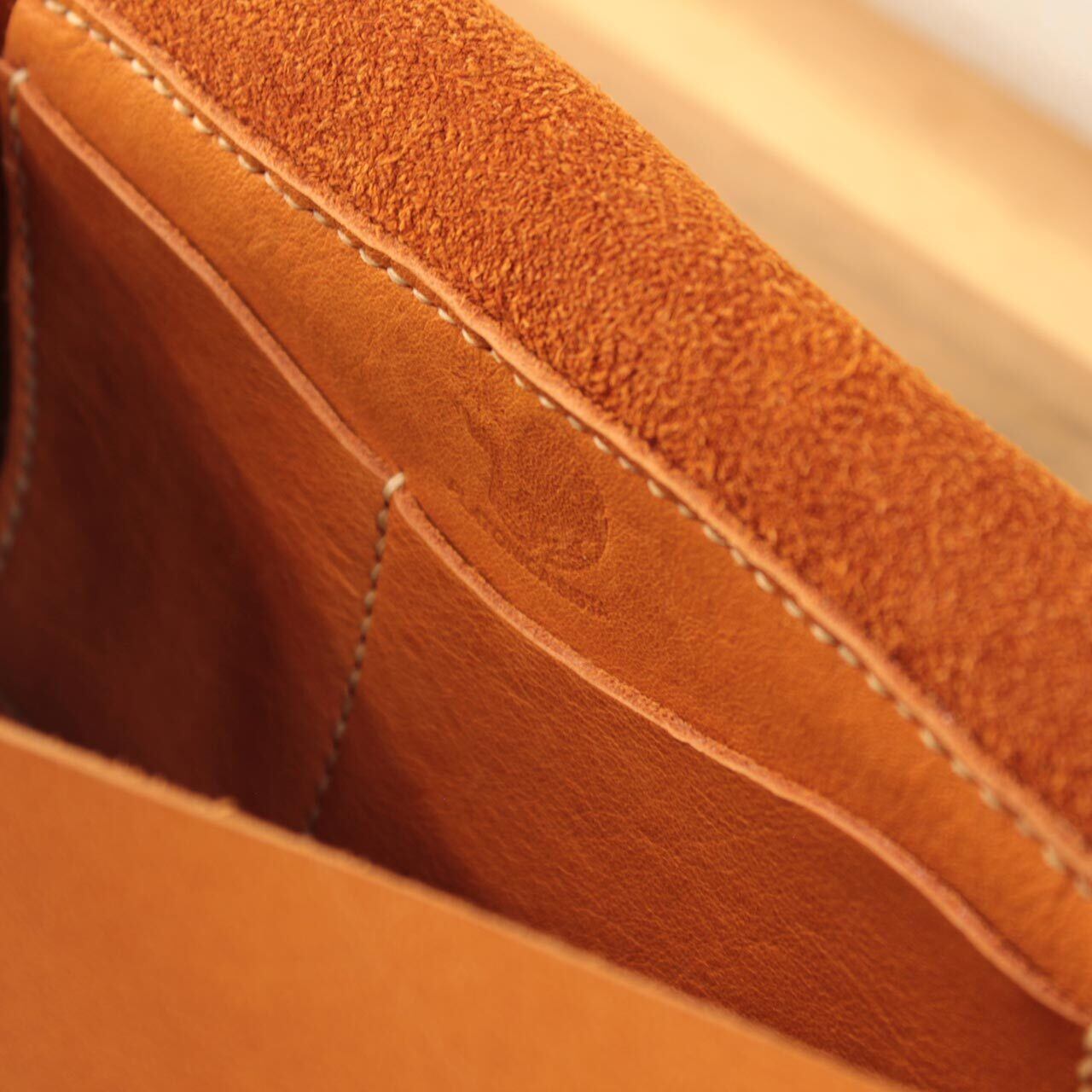 艶やかな牛革を使用しており、深みのあるキャメル色が魅力的。