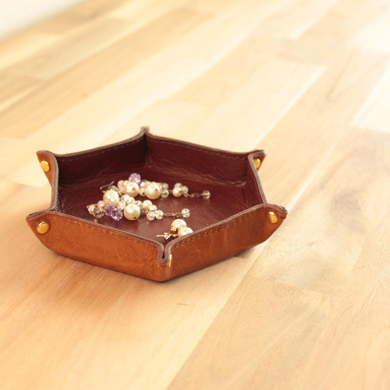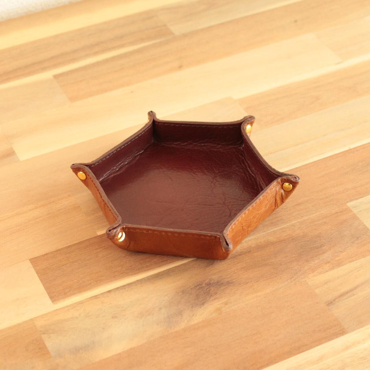 革トレイ 六角形 選べる2カラー&金具